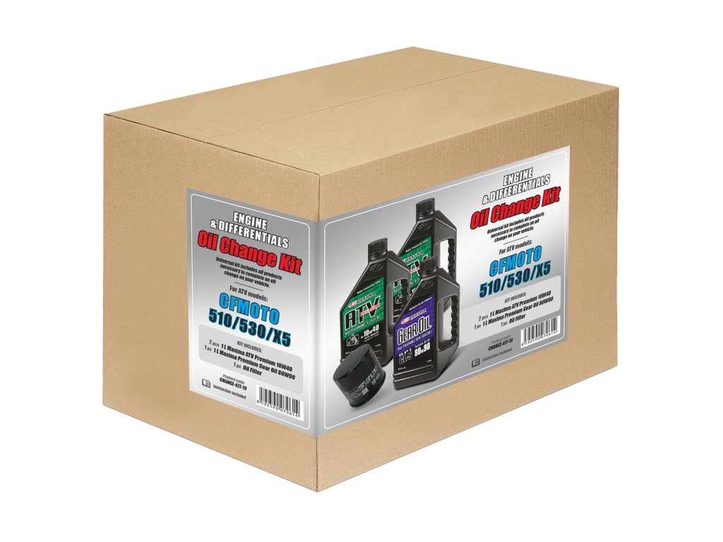 Sada pro kompletní výměnu olejů pro CFMOTO 510/530/X5, včetně olejového filtru, motorového oleje, oleje do diferenciálů a podrobného návodu s postupem