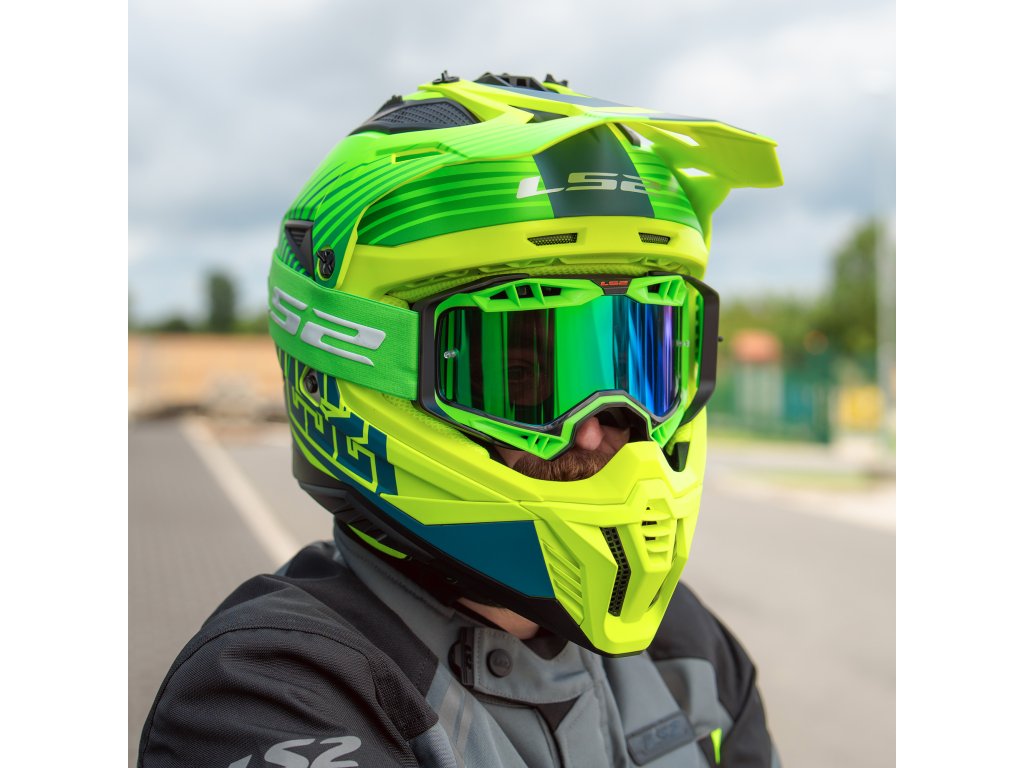 LS2 AURA PRO GOGGLE BLACK H-V GREEN WITH IRIDIUM VISOR