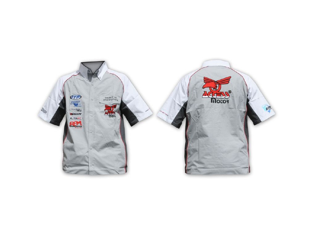 Pánská firemní a reklamní košile Access Motor s krátkým rukávem a firemními logy, sportovní střih, zapínání na knoflíky