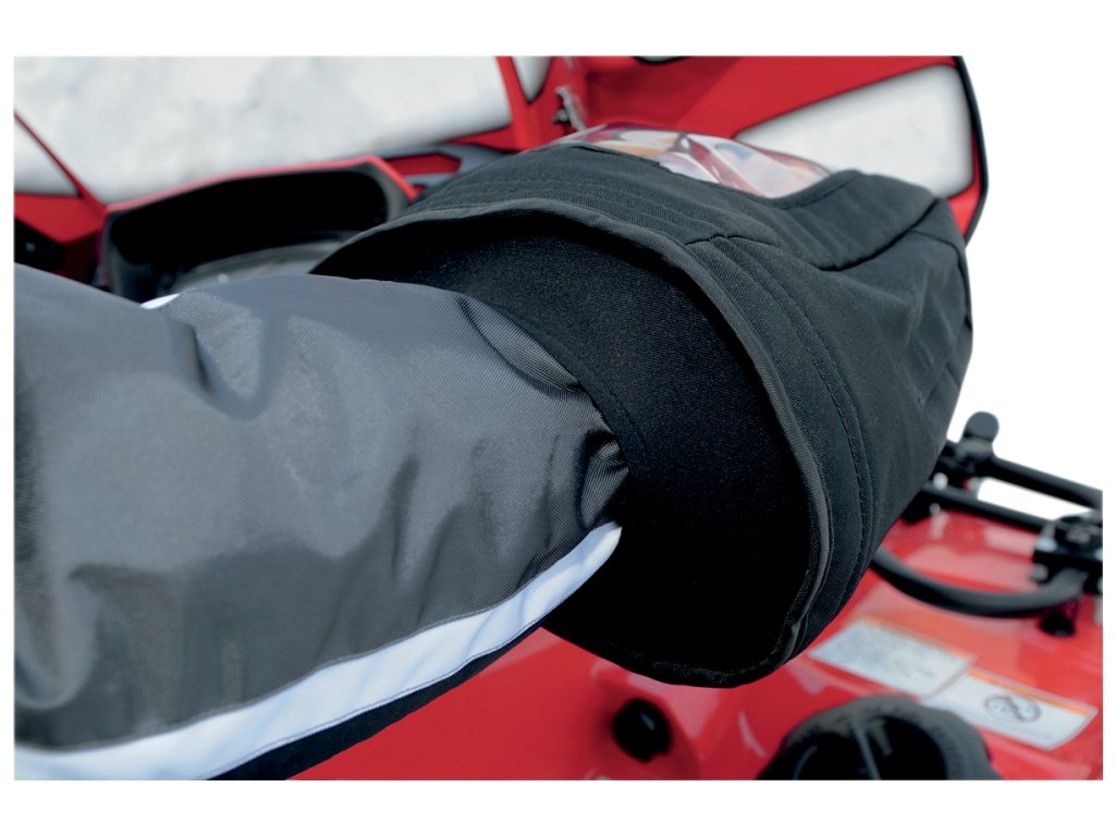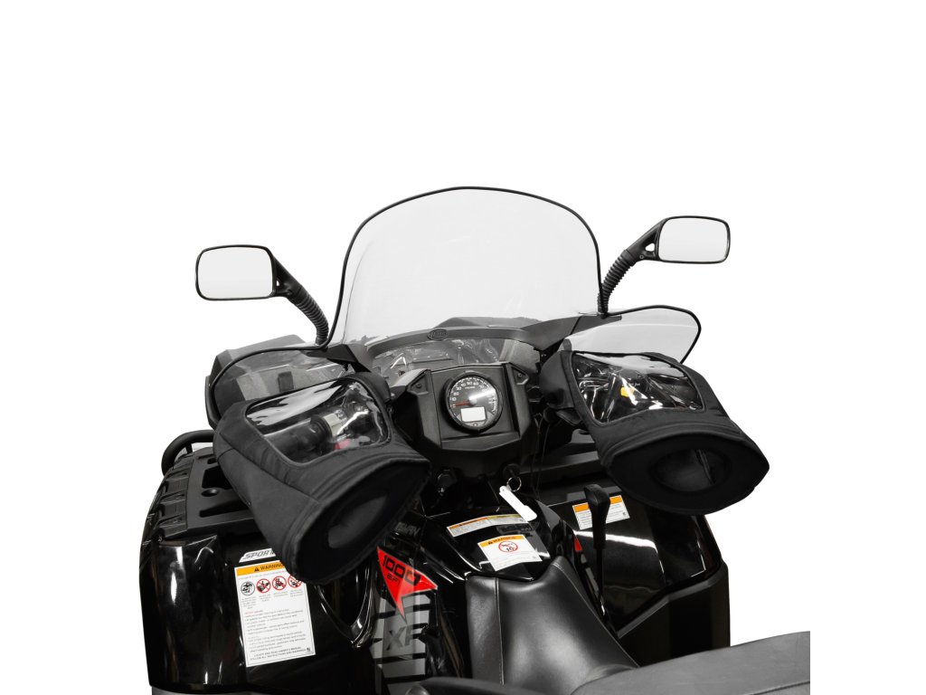 Rukávníky Kimpex Visi-Control, udržují ruce v teple a přitom ponechávají všechny ovládací prvky dobře viditelné, mrazuodolná plastová okénka, izolační neoprenová vrstva, vyrobeno z 600-denier nylonu a polyesteru s polyuretanovým zátěrem, vodotěsné